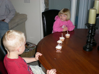 The North's came to visit! We LOVE them and they really are like family. We missed all their birthdays this year (such great friends we are !) so we decided to have a group birthday party. This is little Landon and Lauren and you shoulda seen them down these cupcakes... little cutie pies. Little Landon is seriously hilarious. Short story: his parents went to a Jazz game and we babysat at the hotel. Little Landon asked if that building over there (aka. the ESA center) was where the jazz played. I said "yeah Landon and your parents are there too," and he said "WHAT!!!!" with this funny tone in his voice like it was the most unbelievable thing EVER! Ok... i realize that this isn't that funny to a lot of people reading... but the kid is only 3 and it sure cracked me up!